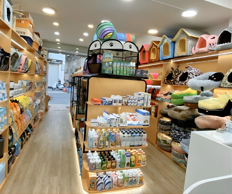 Thiết kế kệ bán hàng pet shop tận dụng không gian nhà ở
